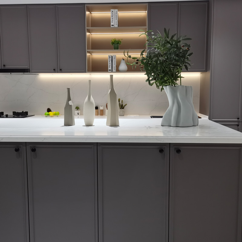 R: Armário de cozinha clássico é o estilo atemporal, especialmente as cores clássicas cinza, marrom e branco.