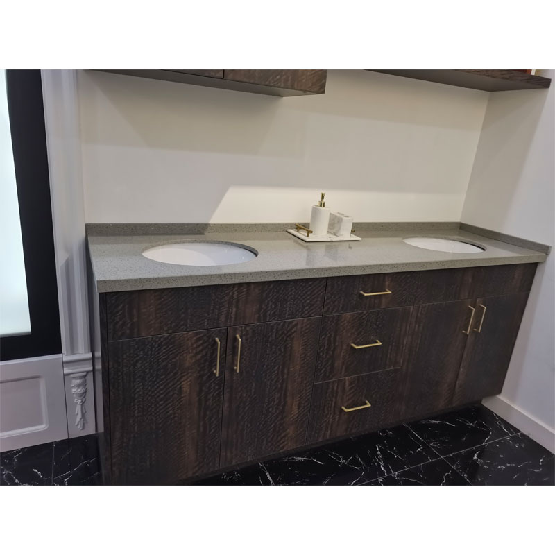 A SINOAH está se esforçando para fornecer vaidades de estilo moderno com bom senso. Esta moderna cor castanha mate torna o espaço silencioso e limpo. O estilo montado na parede pode aproveitar ao máximo o espaço. E o formato da porta e a cor da bancada podem ser personalizados.