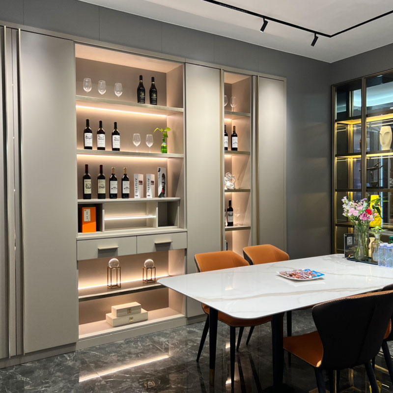 Sinoáé orgulhosamente profissional no fornecimento de armários laterais de sala de jantar personalizados para construtor, empreiteiro, desenvolvedor e proprietários.Sinoá produz estilo conciso de armários de sala de jantar com diferentes materiais como malemine, pvc, pet, laca e vidro etc. de acordo com a exigência e orçamento dos clientes. Selecionamos as matérias-primas qualificadas para finalizar os requintados armários.