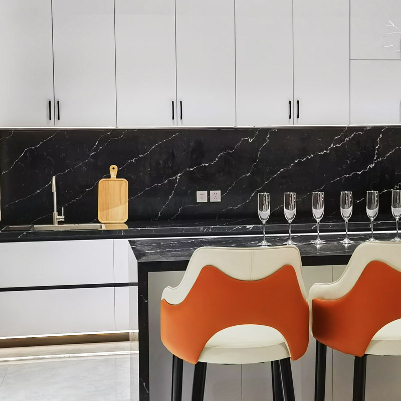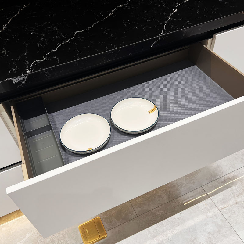 Esta série de Armários de Cozinha Brancos Modernos usa um tratamento de superfície ecologicamente correto. O material básico dos painéis é feito de madeira de pinho de alta qualidade como matéria-prima com a linha de produção automticamente inteligente de primeira classe importada da Alemanha. Usamos apenas cola MDI (diisocianato de 4-difenilmetano); o fenil era volátil durante o processo de produção de alta temperatura.