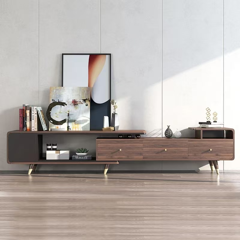 O armário de TV em forma de piso é o estilo mais comum e versátil. É simples e economizando espaço, fácil de combinar, e pode evitar uma sensação de opressão no espaço. É adequado para layouts com profundidade insuficiente, larguras estreitas e paredes de fundo existentes.