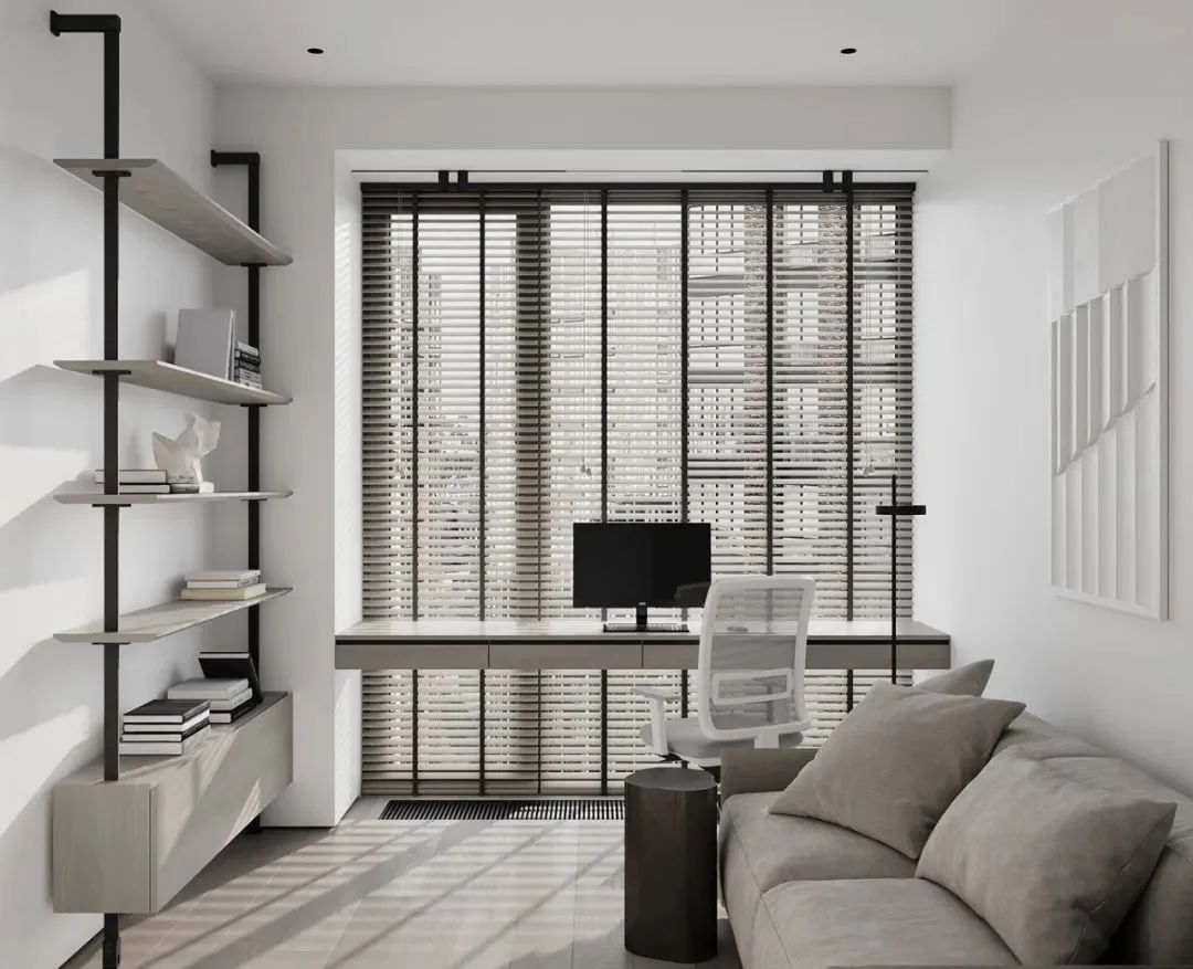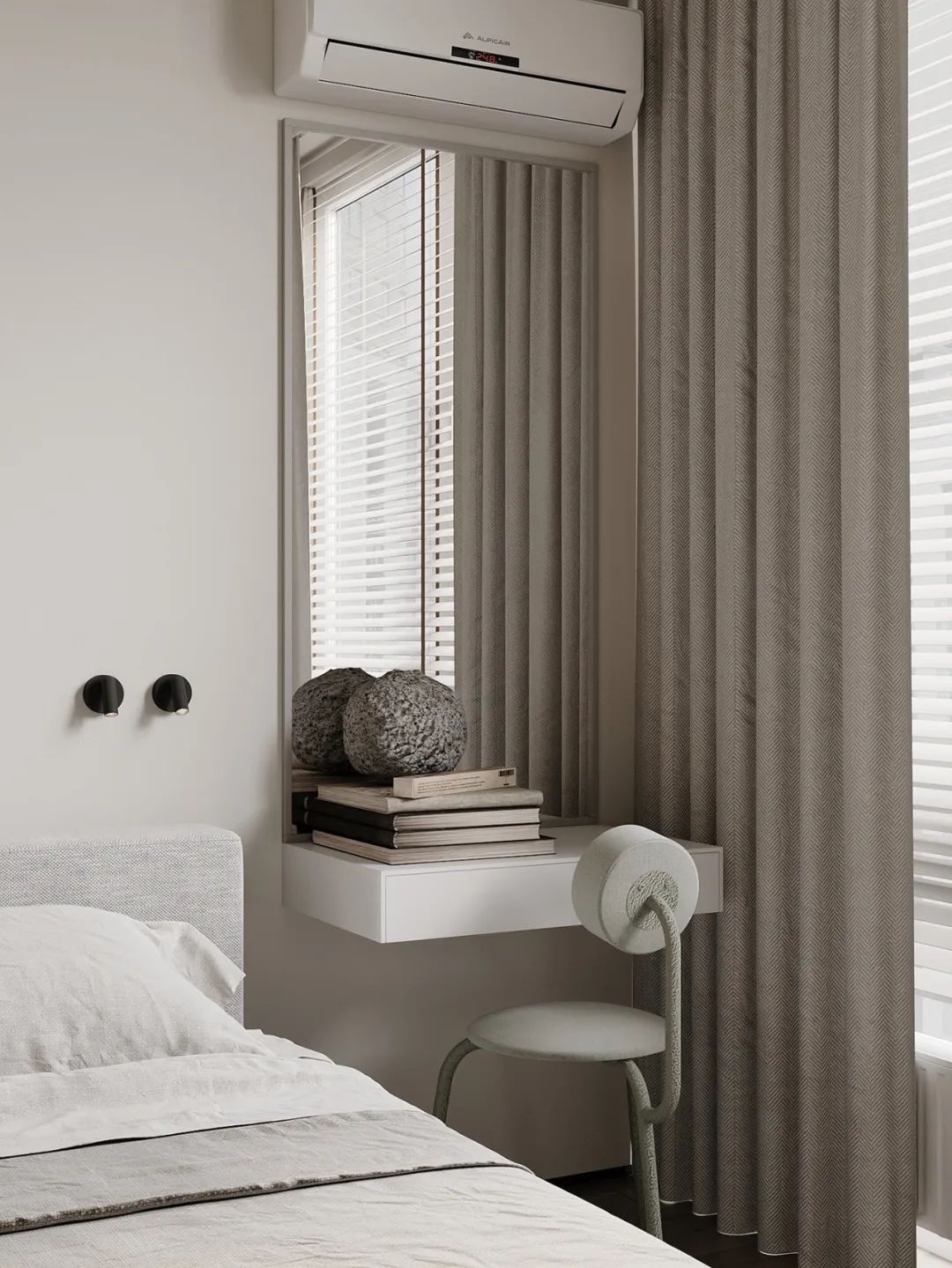 Se a visualização da janela for boa, você poderá utilizar a janela para uma mesa suspensa. Esse método não apenas desbloqueia vários usos para o peitoril da janela, mas também permite que os proprietários aproveitem o cenário do lado de fora enquanto trabalham.