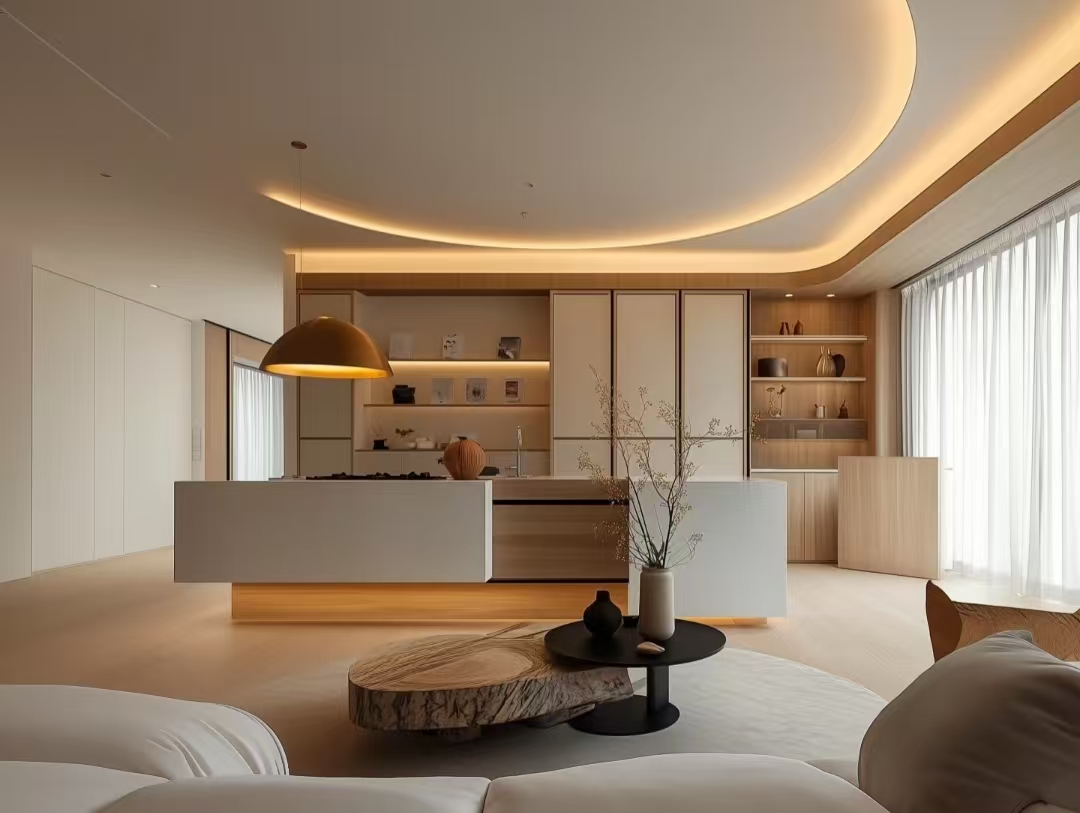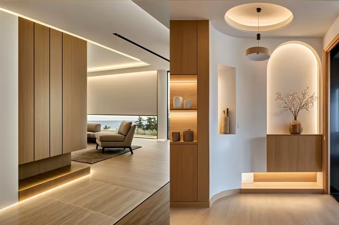 Usando cores de madeira branca e natural creme para criar uma casa atemporal e duradoura.