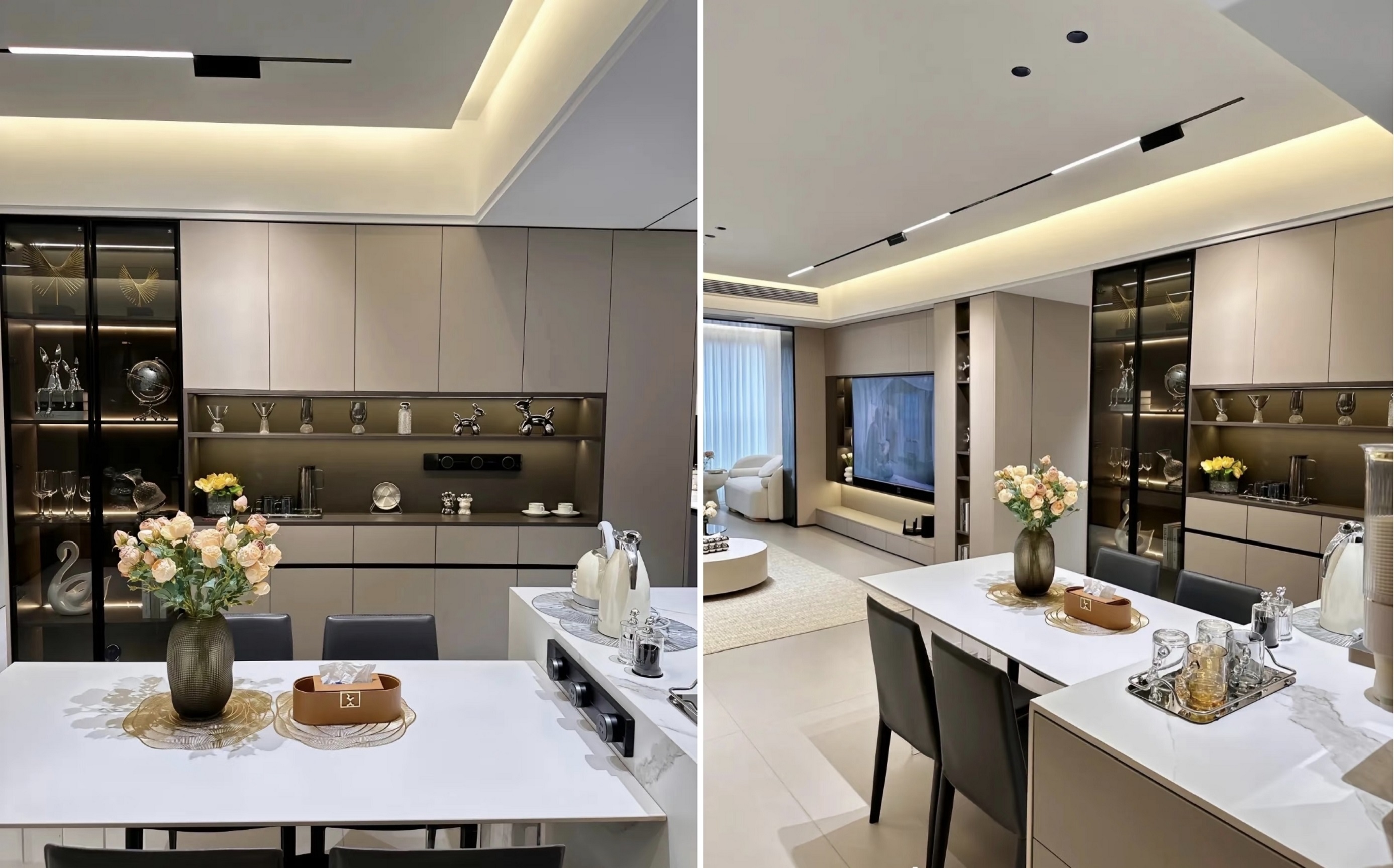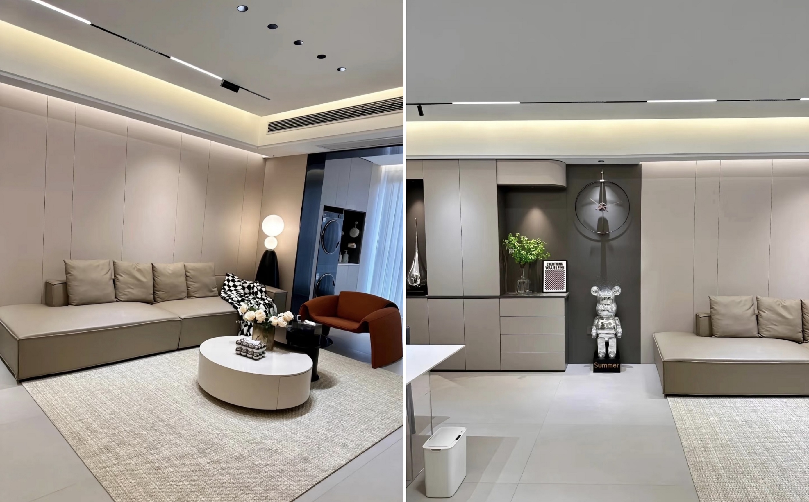 6. A iluminação é a alma de um lar. A sala de estar adota um design sem uma luz principal, com uma temperatura de cor de 3500k. Todas as luzes estão incorporadas no teto e precisam ser pré-controladas durante o estágio de carpintaria.