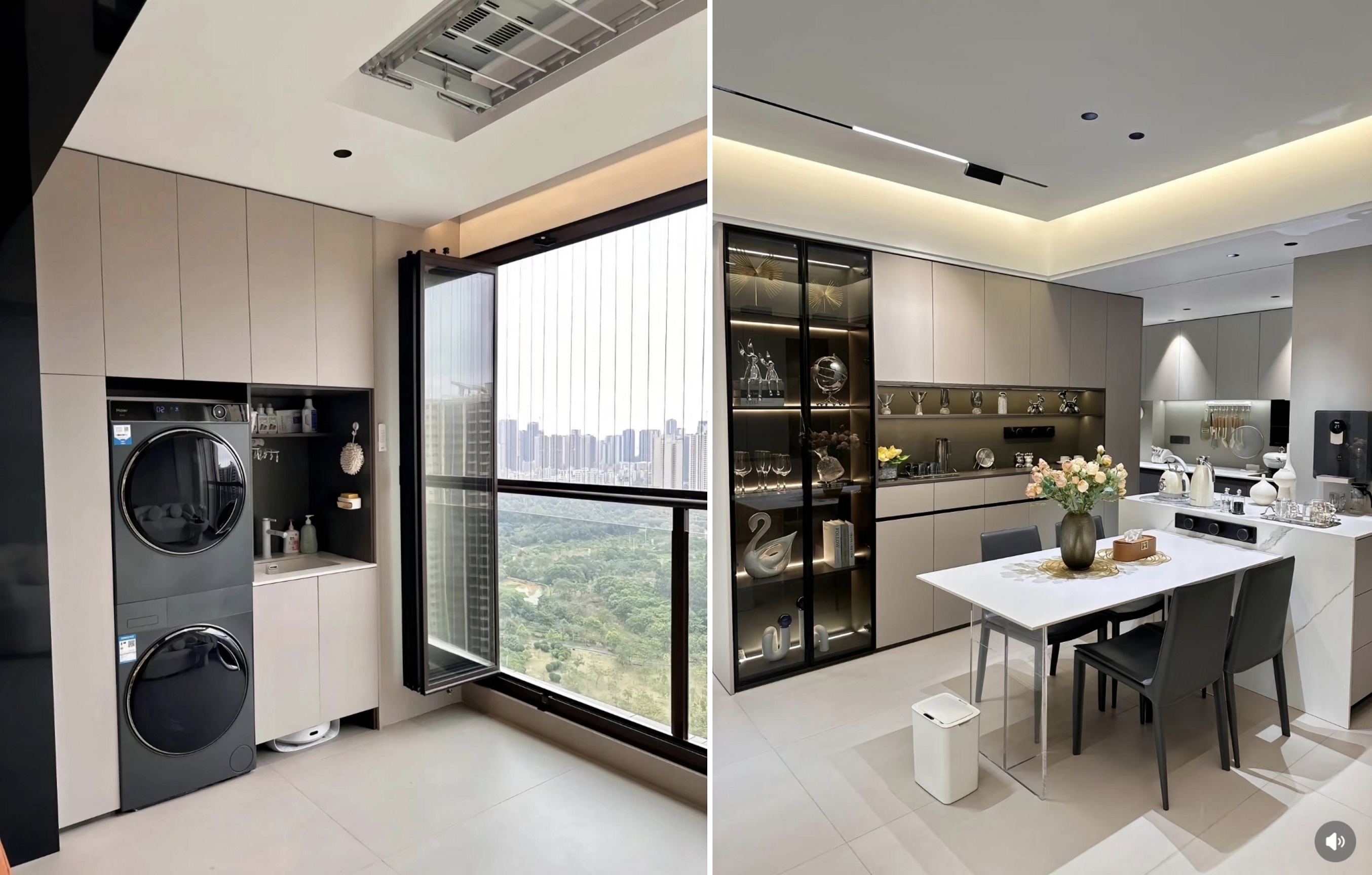 2. A porta deslizante da sala foi removida e uma janela dobrável foi adicionada ao parapeito de vidro, fazendo a sala parecer maior e melhorar a ventilação.